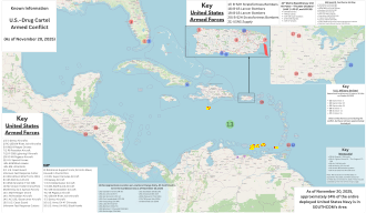 At least 14 U.S. Navy ships are currently operating in the U.S. Southern Command (SOUTHCOM) area of responsibility (AOR) in the Caribbean Sea. This deployment does not include submarines.