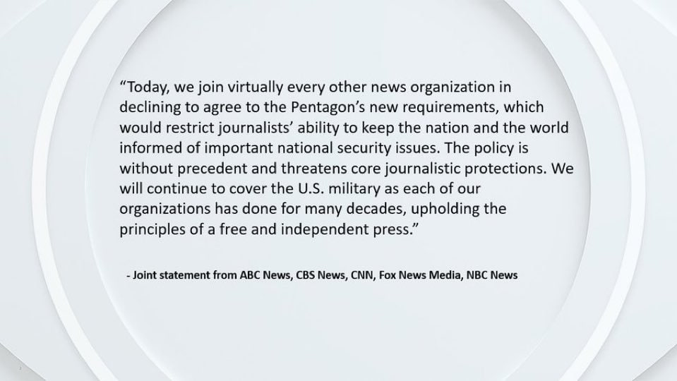 Fox News, CNN, CBS News, and NBC News have declined to sign new press rules set forth by the Pentagon. This decision was reported on Tuesday, October 14, 2025.