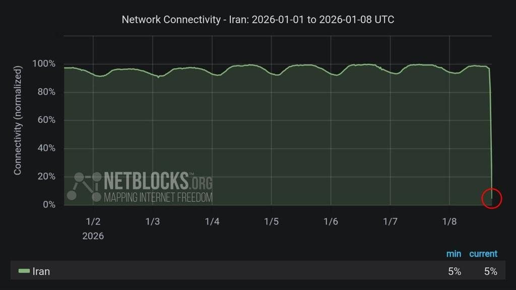 Iran is currently experiencing a nationwide internet blackout, with connectivity reported at just 5%. This significant disruption comes amid ongoing protests across the country. The blackout has severely limited access to online communication and information for the Iranian population.