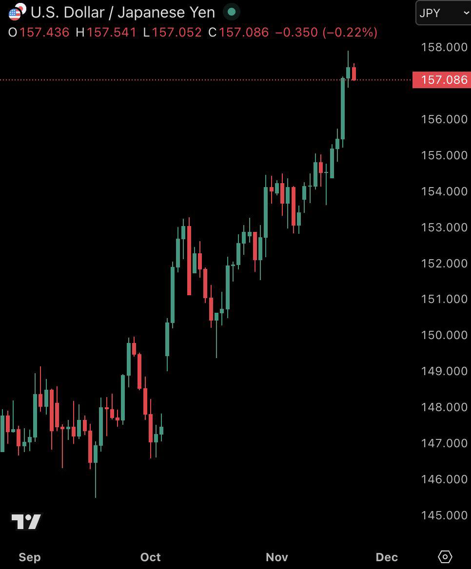 Japan"s government announced that it may intervene in the foreign exchange market if the Japanese Yen approaches a ratio of 160 to the US Dollar. Currently, the Yen has depreciated from 145 to 157 over the past two months.