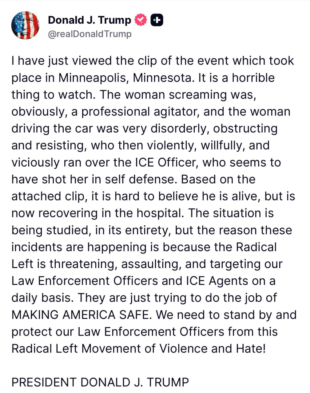 This statement follows a recent incident in Minneapolis, where the ICE officer was involved in the shooting. Trump questioned how the officer, who shot the woman, managed to survive the encounter.