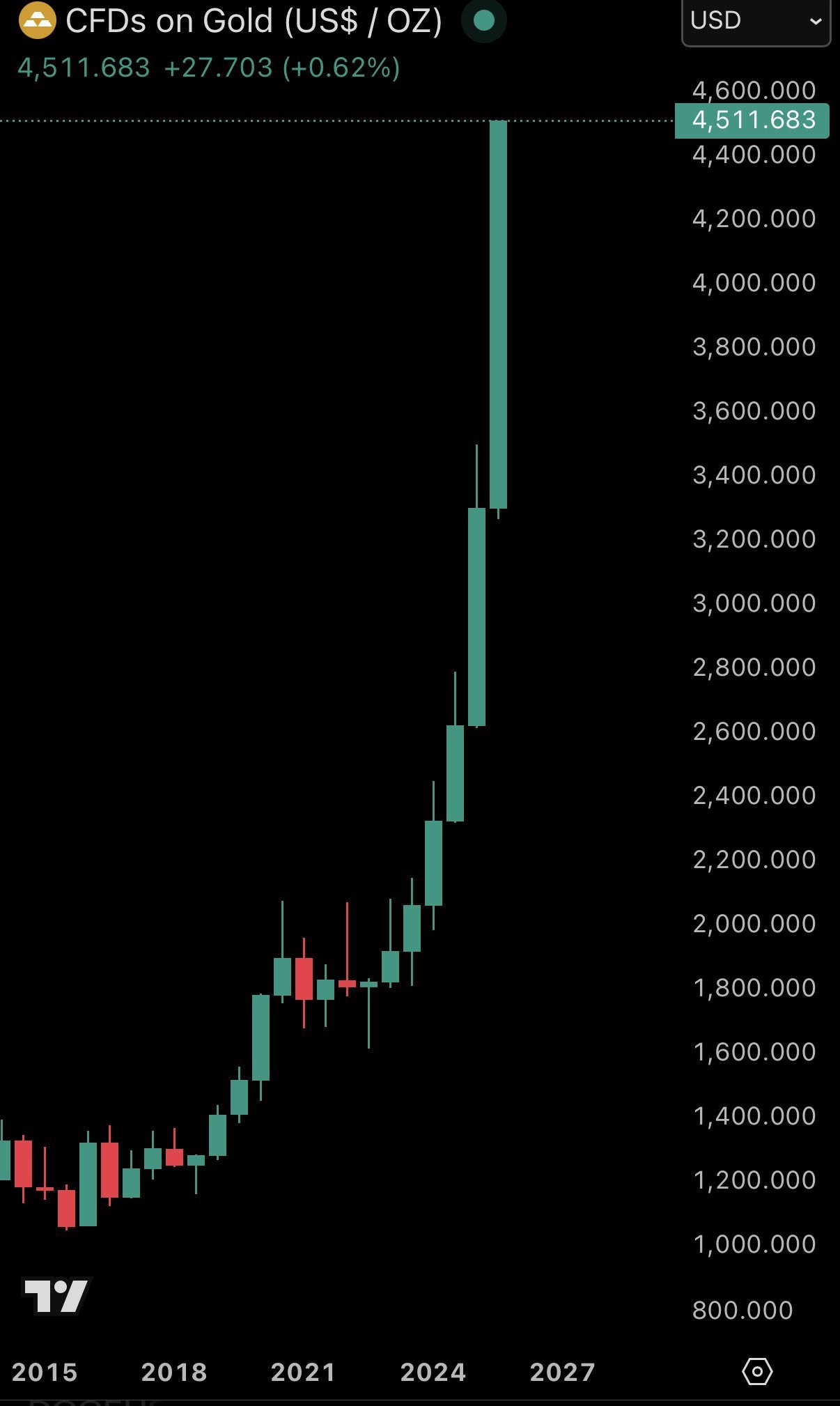 Spot gold prices have surged above $4,500 per ounce for the first time in history, marking a significant milestone in the precious metals market. As a result, gold has reached an asset value of $31.5 trillion, making it nearly seven times larger than Nvidia.
