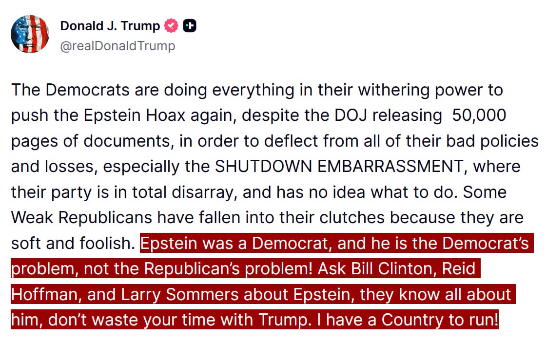 Former President Donald Trump accused the Democratic Party of attempting to revive what he termed the "Epstein Hoax." This statement was made during a recent public appearance, where Trump expressed his belief that Democrats are using their influence to push this narrative once again.