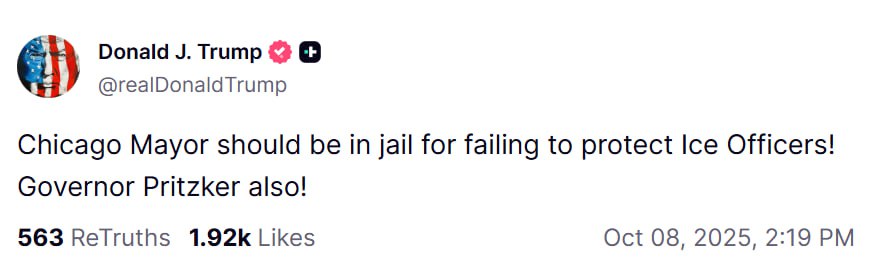 Former President Donald Trump has called for the imprisonment of Chicago Mayor Brandon Johnson and Illinois Governor J.B. Pritzker. In a post on Truth Social, Trump stated that both officials should be jailed for their failure to protect Immigration and Customs Enforcement (ICE) officers.