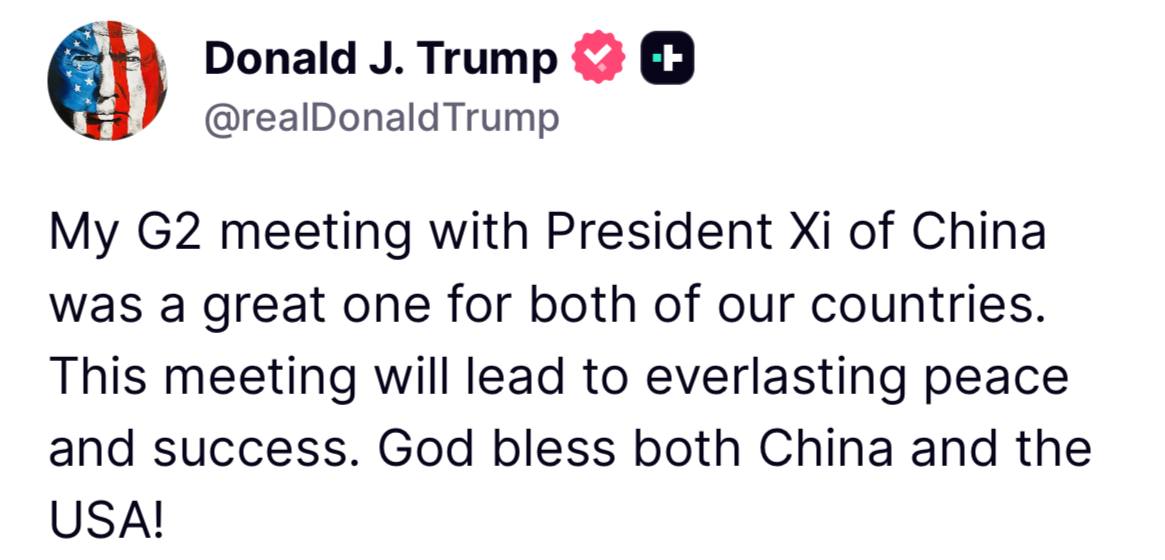 Former President Donald Trump described his recent meeting with Chinese President Xi Jinping as a “great one” that he believes will lead to “everlasting peace and success.”