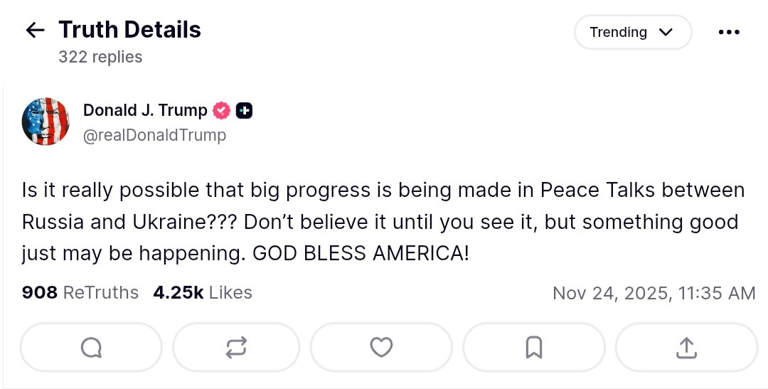 US President Donald Trump has expressed skepticism regarding the progress of peace talks between Russia and Ukraine. In a statement, he questioned whether significant advancements are truly being made in the negotiations. Trump advised caution, stating, "Don’t believe it until you see it," but noted that "something good just may be happening." He concluded his remarks with a message of support, saying, "GOD BLESS AMERICA!"