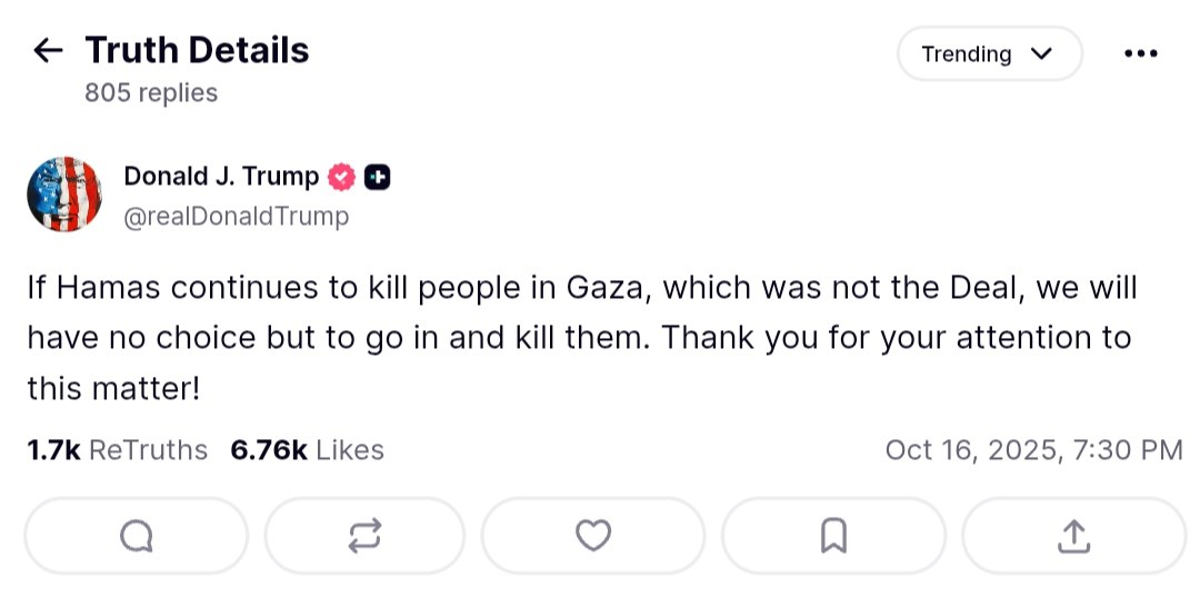 In a statement, Trump emphasized that if Hamas persists in killing people in Gaza, which he stated was not part of an agreed deal, the United States would have "no choice but to go in and kill them." He expressed gratitude for attention to this matter.