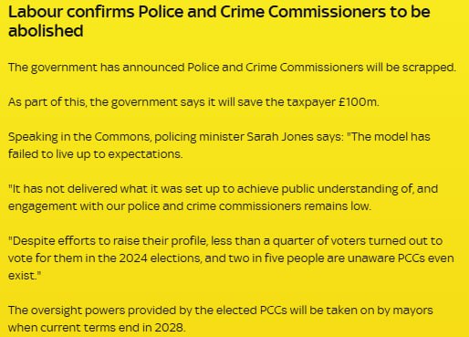 The United Kingdom has announced the abolition of Police and Crime Commissioners, a move expected to save taxpayers £100 million. This change will take effect in 2028, with mayors and councils set to assume the responsibilities previously held by the Commissioners.