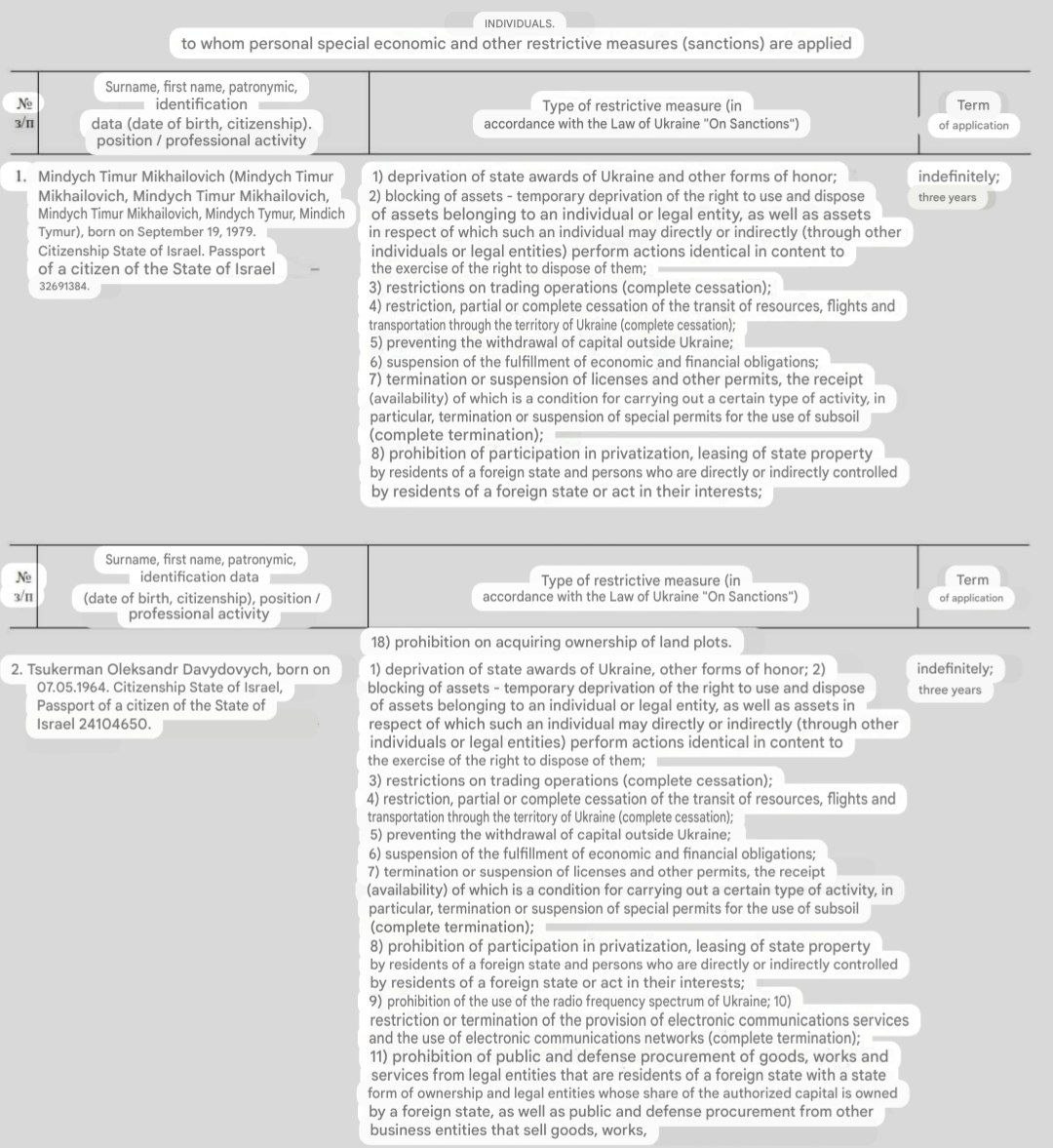Ukraine has imposed sanctions against Timur Midnych and Oleksaner Tsukerman, who are the main suspects in a recent corruption scandal involving the country"s energy sector. This decision was announced on Thursday, November 13, 2025.