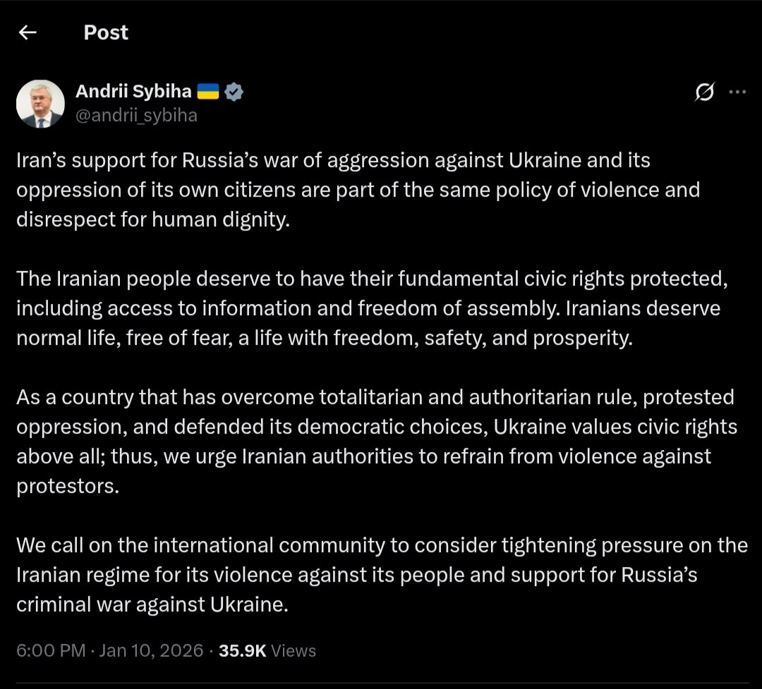 On January 10, 2026, Ukrainian Foreign Minister Andrii Sybiha issued a strong statement urging the international community to intensify pressure on the Iranian regime. This call to action is in response to Iran"s ongoing violence against its own citizens and its support for Russia"s military aggression in Ukraine. The Ukrainian government emphasizes that these two issues are intertwined, reflecting a broader policy of violence and a disregard for human dignity.