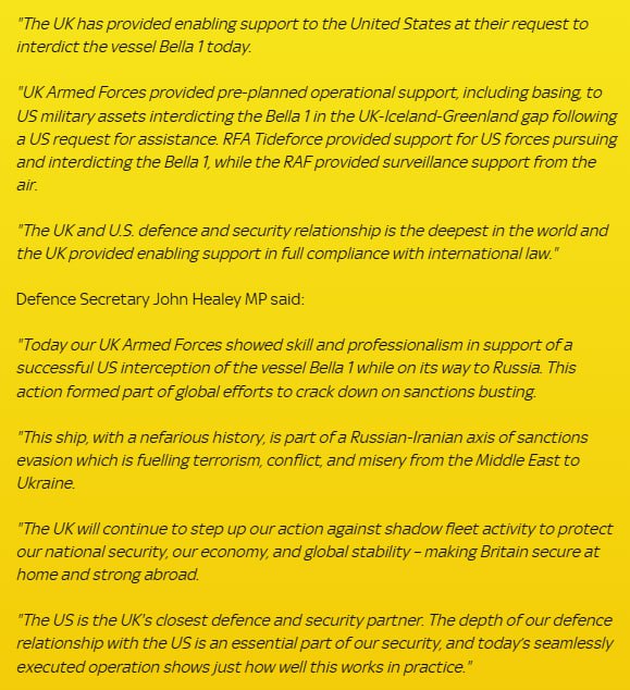 The United Kingdom"s Ministry of Defence (MoD) has confirmed that it provided support to the United States for the seizure of the Russian-flagged oil tanker, Bella 1. This operation is part of ongoing efforts to enforce sanctions against Russia.