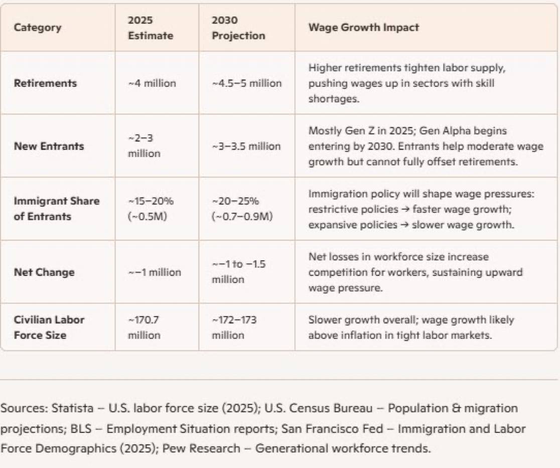 By 2030, the disparity between the number of retirees and new entrants to the labor force is projected to create a labor shortage. With 4.75 million retirements expected and only 3.25 million new workers entering the labor market, the gap of 1.5 million could have profound effects on various sectors of the economy. This imbalance may lead to increased competition for available jobs, driving wages higher as employers seek to attract and retain talent.