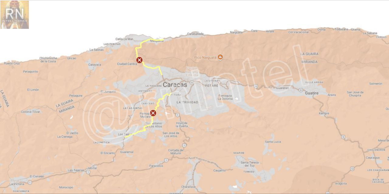 One of the affected roads is the Caracas-La Guaira Highway, which remains open for a single lane, presumably to allow access to the town of Maiquetia. In contrast, the Panamericana route has been completely obstructed. Images from the scene show the National Guard (GNB) positioned behind the barriers.