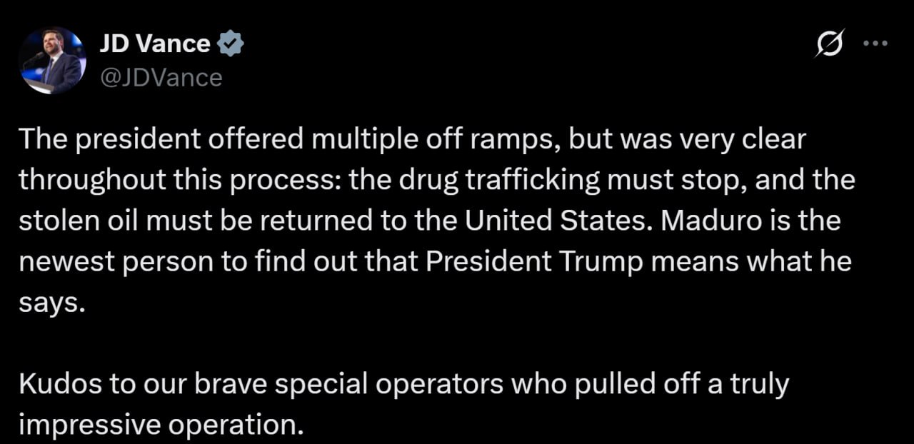 Additionally, Vance commended the efforts of U.S. special operators, describing their recent operation as impressive. For more information on this situation, see related coverage on Maduro facing U.S. indictments for narcoterrorism.