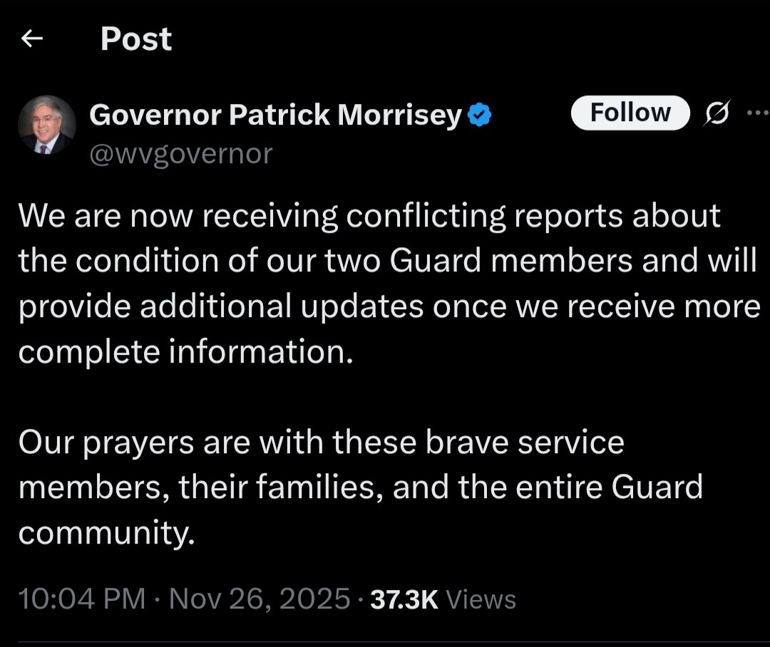 West Virginia Governor Patrick Morrisey has reported conflicting information regarding the condition of two National Guard members. The governor stated that updates will be provided as more complete information becomes available. This announcement follows earlier reports concerning the status of the guardsmen.