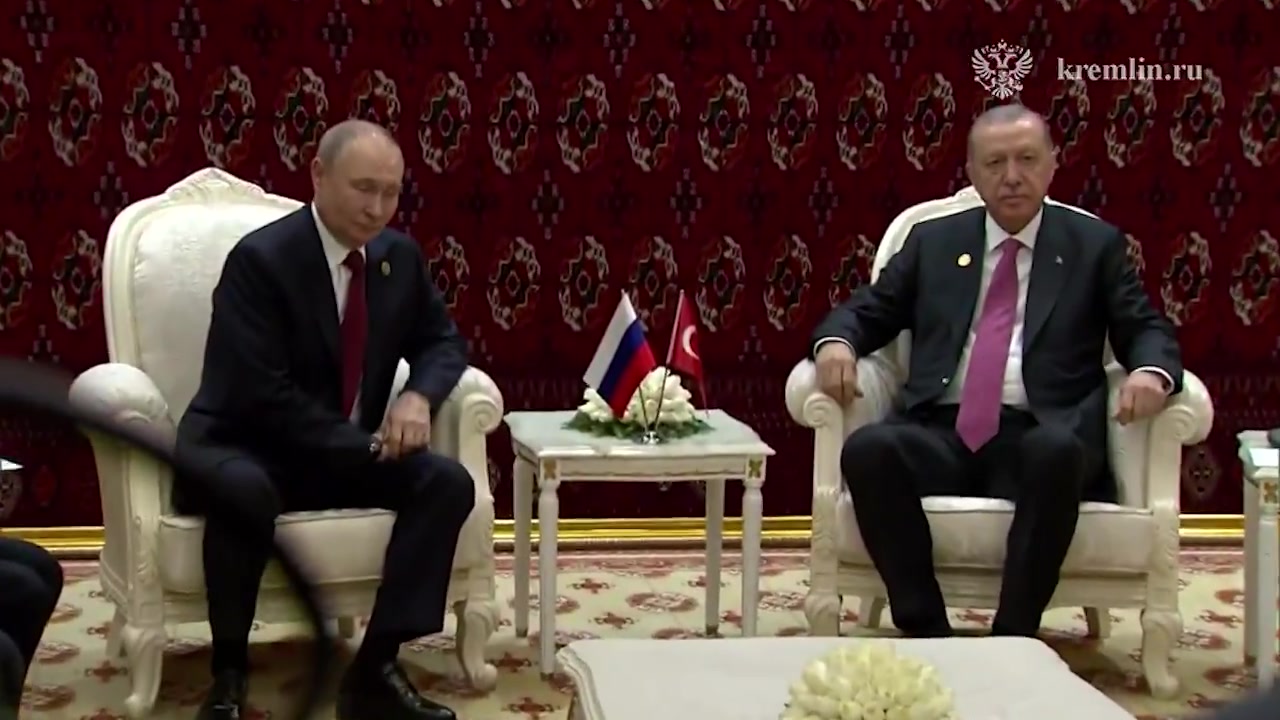 Video: Footage shows Russian President Vladimir Putin and Turkish President Recep Tayyip Erdoğan meeting in Ashgabat, Turkmenistan.